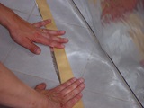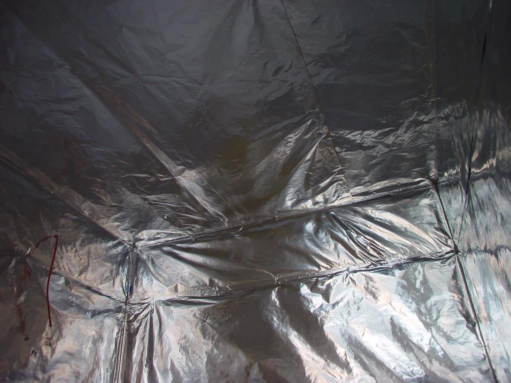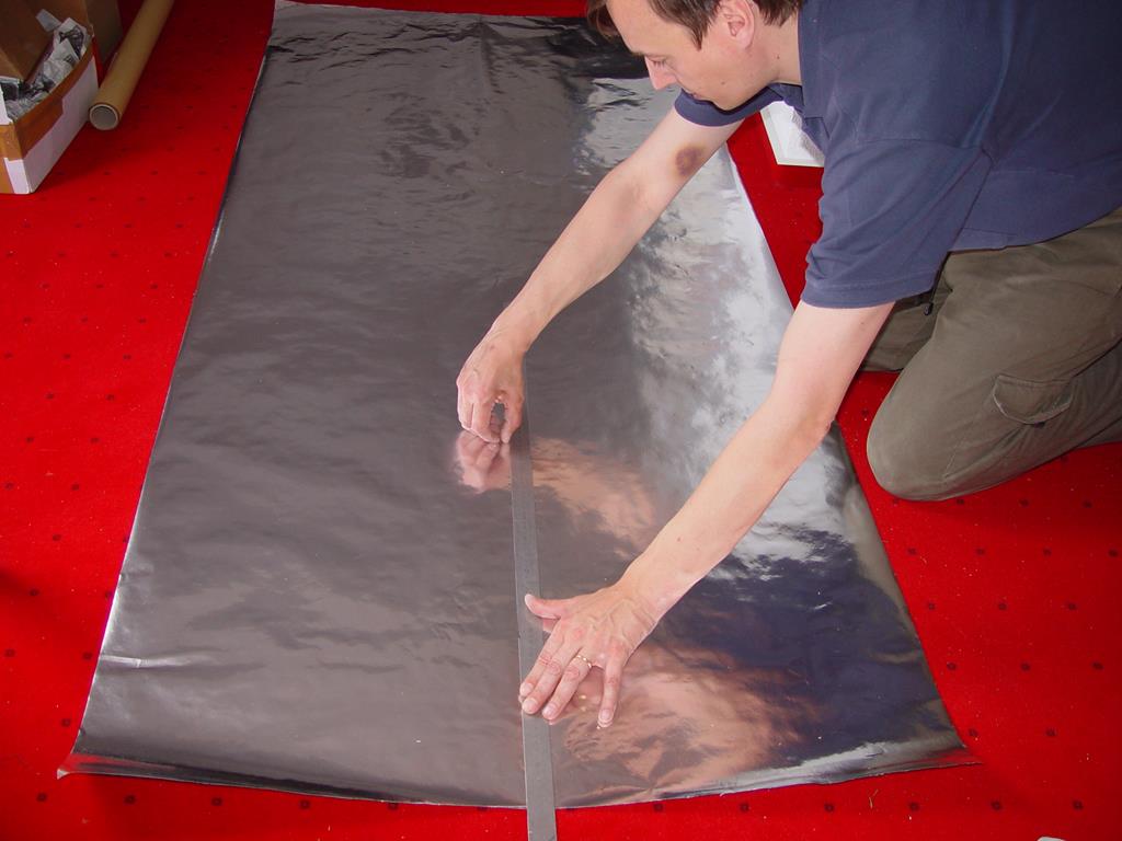Das Verlegen der Folie an der Decke erfodert Messen und planen. Ich habe die Folien entsprechend gefaltet.