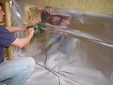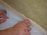 Jetzt wirst Du feststellen wie oft Du irgendwo mit einem Werkzeug oder einem Stück Holz anschlägst: weil es jedes mal ein Riss oder Loch in der Dampfsperre gibt.