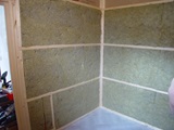 Hier findest Du Ansichten der fertigen Wände. Die Sauna nimmt Form an.