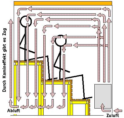 Belüftung: das A & O für eine funktionierende Sauna. Denke keine Sekunde danach, dass Du das nicht brauchst. Zuluft unter dem Ofen und Abluft diagonal gegenüber sind unumgänglich. Hast Du keine Luftzirkulation, dann findest Du Dich beim Saunagang mit Offener Türe wieder (um Luft zu bekommen).
