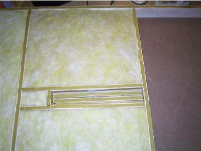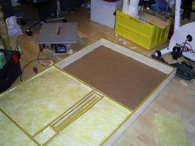 Die beiden Deckenelemente meiner Sauna, jeweils im Format 1 m x 2 m, mit 10 cm dicker Isolationsschicht (doppelt so dick als die Wandisolation),