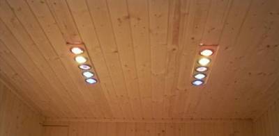 Arno Henk hat in seiner Sauna eine Beleuchtung auf Basis von handelsüblichen Deckenstrahler eingebaut.