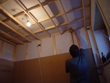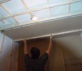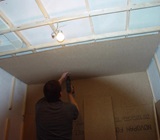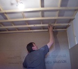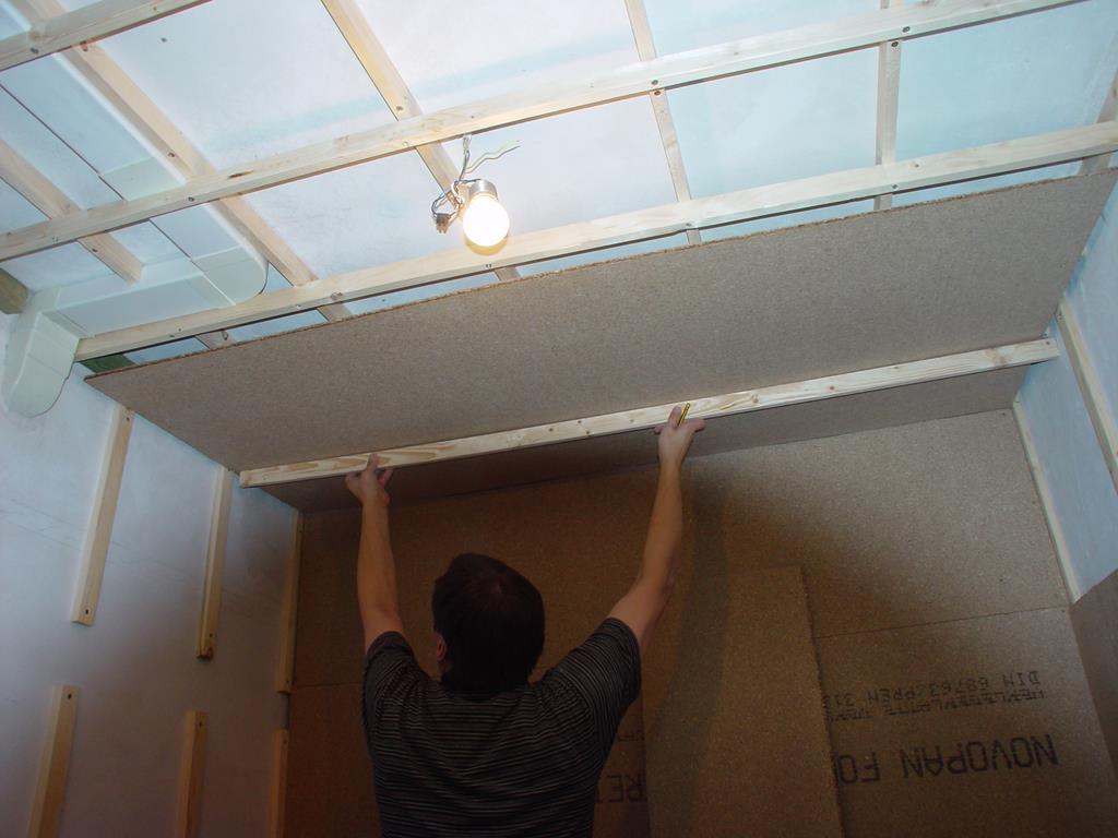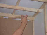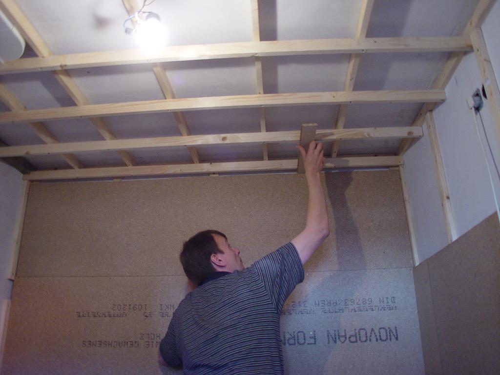 An der Decke wird das Arbeiten Schwieriger. Das “Treffen” einer Latte mit der Besfestigungsschraube ist dabei das Schwierigste. Messen, messen und nochmals messen ist der Weg zum Ziel.