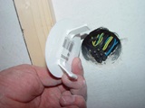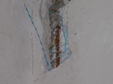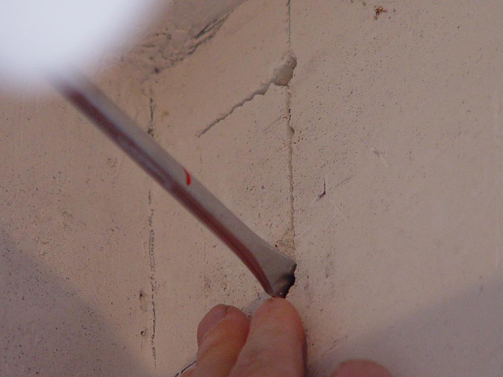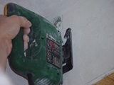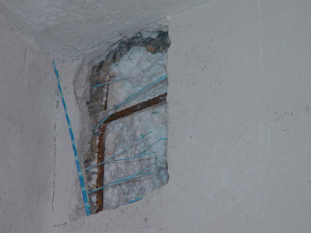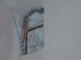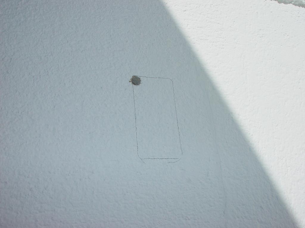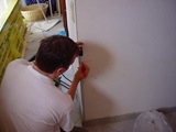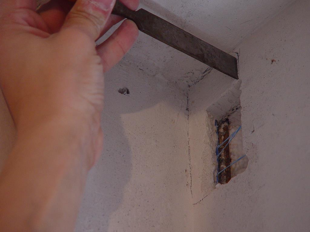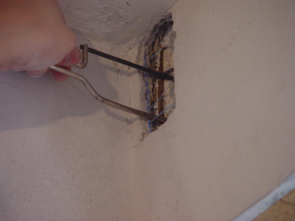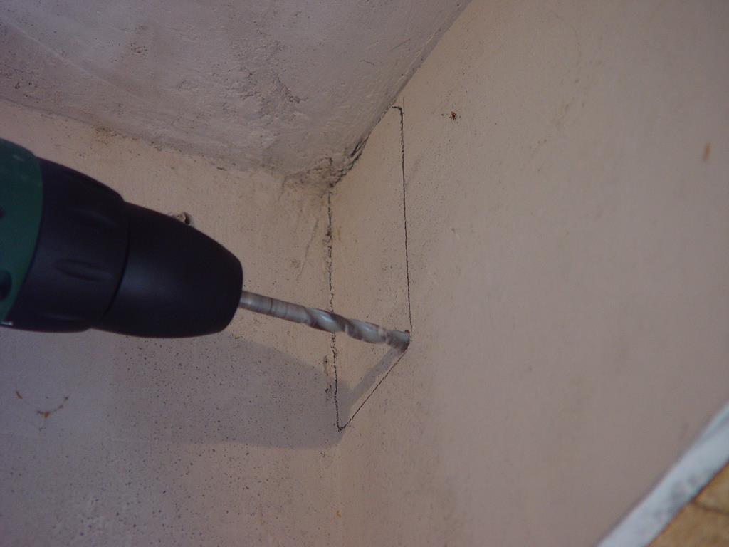 Nachdem das Loch auf der Innenseite fertig ist, muss der Weg nach draussen durch die Styropordämmung freigelegt werden.