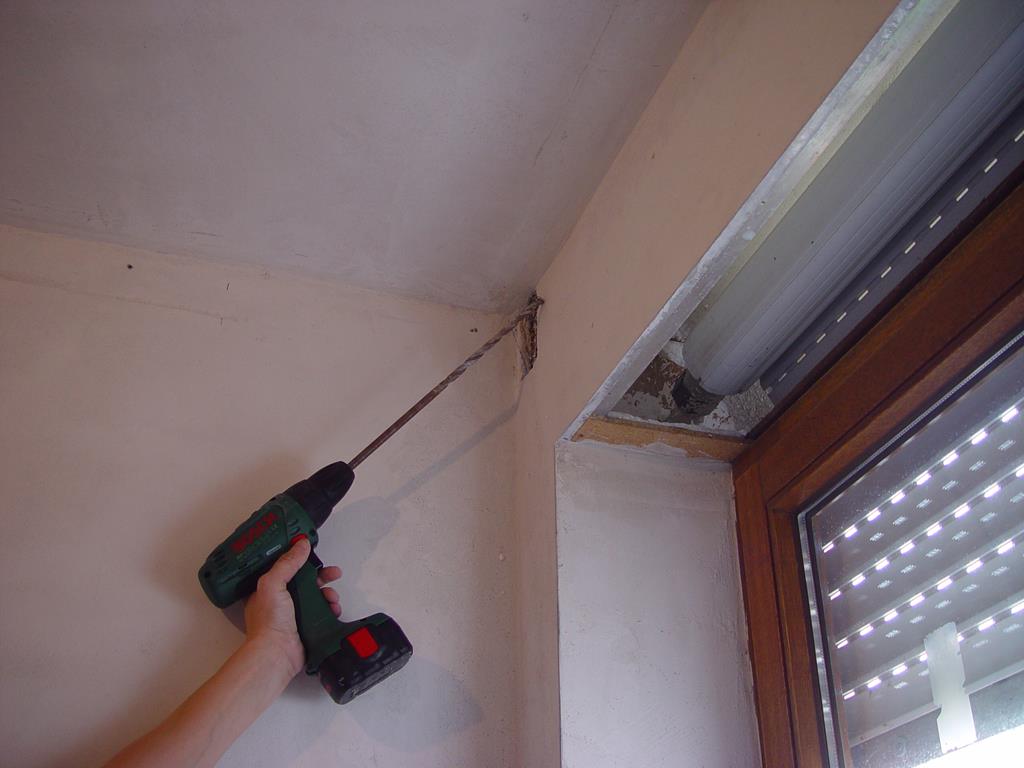 Ich habe für die Entlüftung den Weg durch den Rolladenkasten gewählt (Prüfe natürlich vorher ob da auch Platz dafür ist!). Hier die Bildertour für den “Durchbruch”