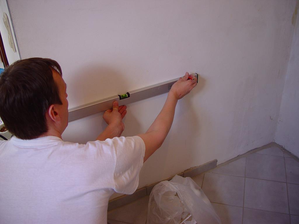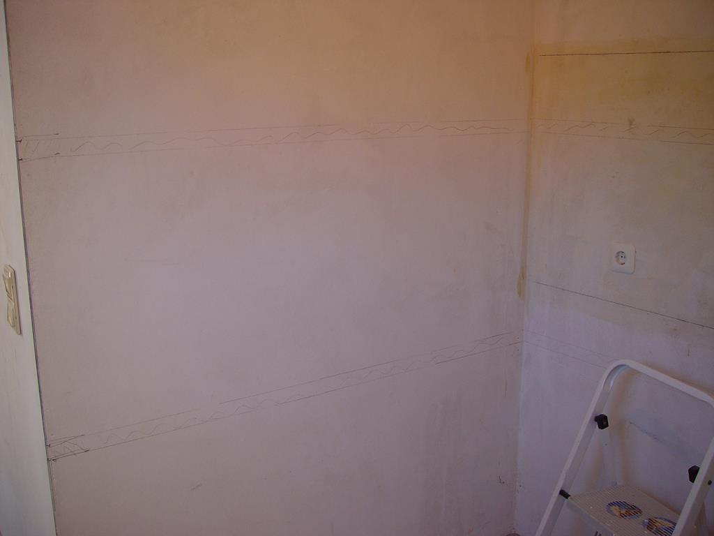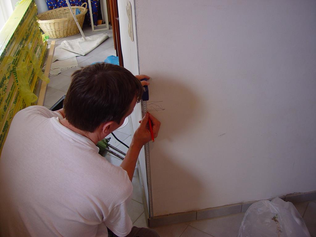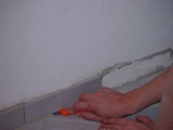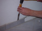 Entferne alles von Decke, Boden und Wände was die Arbeit erschweren lönnte (sofern möglich natürlich). In diesem Fall handelt es sich um bereits angebrachte Randfliesen die sich einfach wegschlagen lassen.